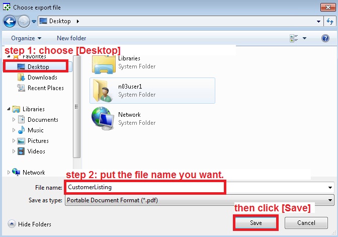 4. After that, below form will appear to allow user choose the Remote server location to save the file exported, it is advice the file to be saved on Remote server [Desktop] folder.