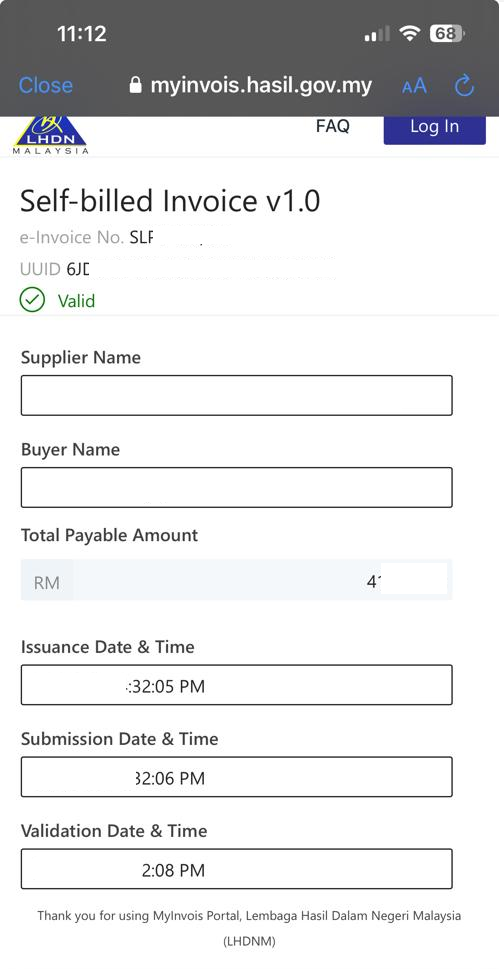 Step 2 : Upon successful registration with LHDN, you will receive LHDN reply. Please fill up  those information into SKYBIZ system as per below picture,