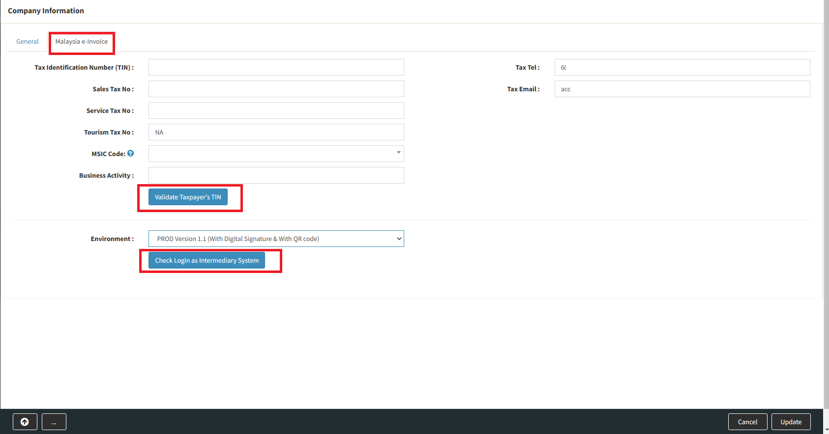 After fill up all the company information, please click [Syn Master File] to the clould , at cloud system click [Check Login as Taxpayer System] and [Validate Taxpayer’s TIN].