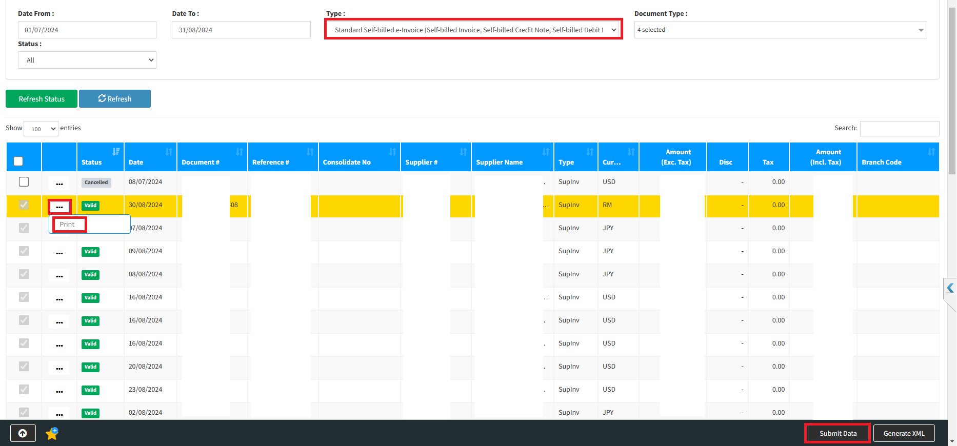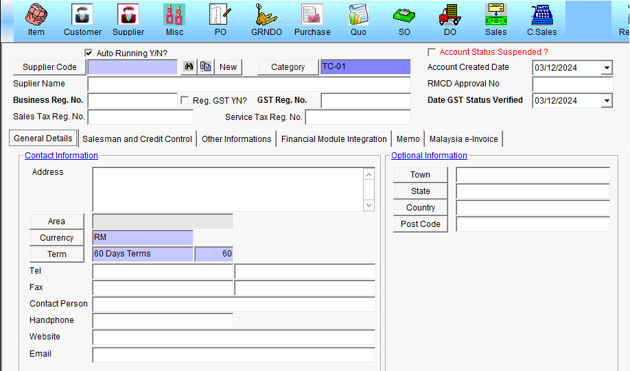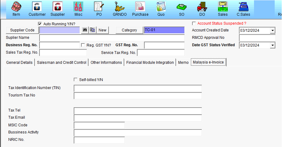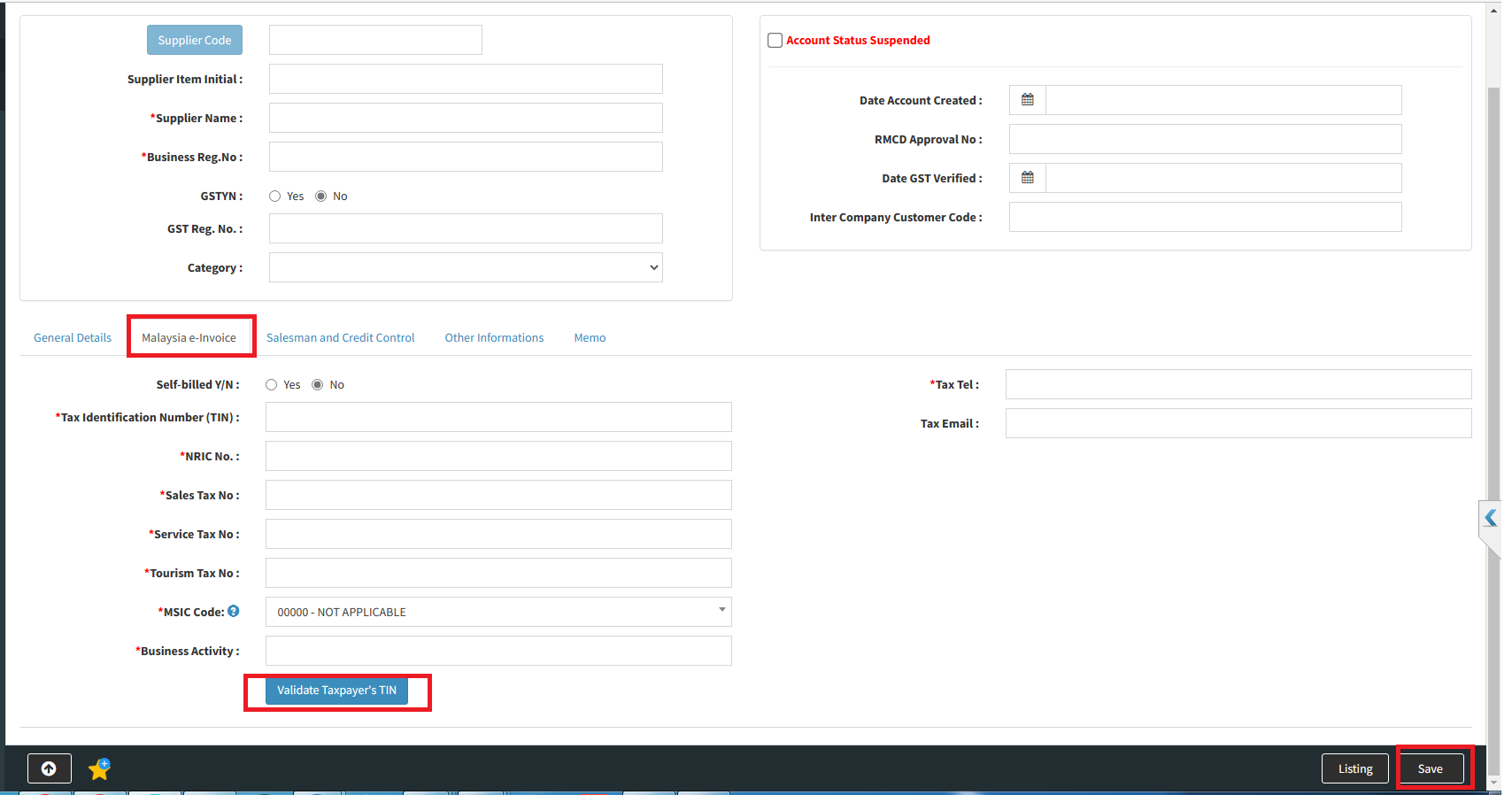 Upon receiving additional supplier information, please update those information into offline supplier module, and click [Validate Taxpayer’s TIN], and save it will validated update into SKYBIZ system.